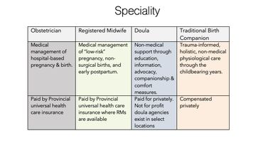 A traditional birth companion, although not medically trained, is well-versed in the medical information, research, and culture of technocratic birth. She provides holistic care through pregnancy, birth, and postpartum for clients of all ‘risk’ categories. She specialises in birth after trauma as she is trained in trauma-informed care and understands what draws clients to out-of-system birth. She does not perform any restricted practices as defined in relevant legislation, nor does she conduct or manage another woman’s labour and birth. Any medical testing is accessed through a family doctor, a walk-in clinic, or other medical specialist. She helps clients to understand the results of any testing and how to use that information to improve wellness and to make informed decisions that are right for that family. There is no diagnosing, no medications, no cutting or stitching, no inducing, no arbitrary time-limits, and no coercion. The TBC does not have hospital privileges and does not attend hospital births. She serves as the community wise-woman, helping to restore physiological pregnancy and birth where possible and encouraging additional care from medical or complementary practitioners when warranted. She restores common wisdom to common families and helps them to welcome their babies in the safety and sanctity of their homes. She serves as a more useful human!